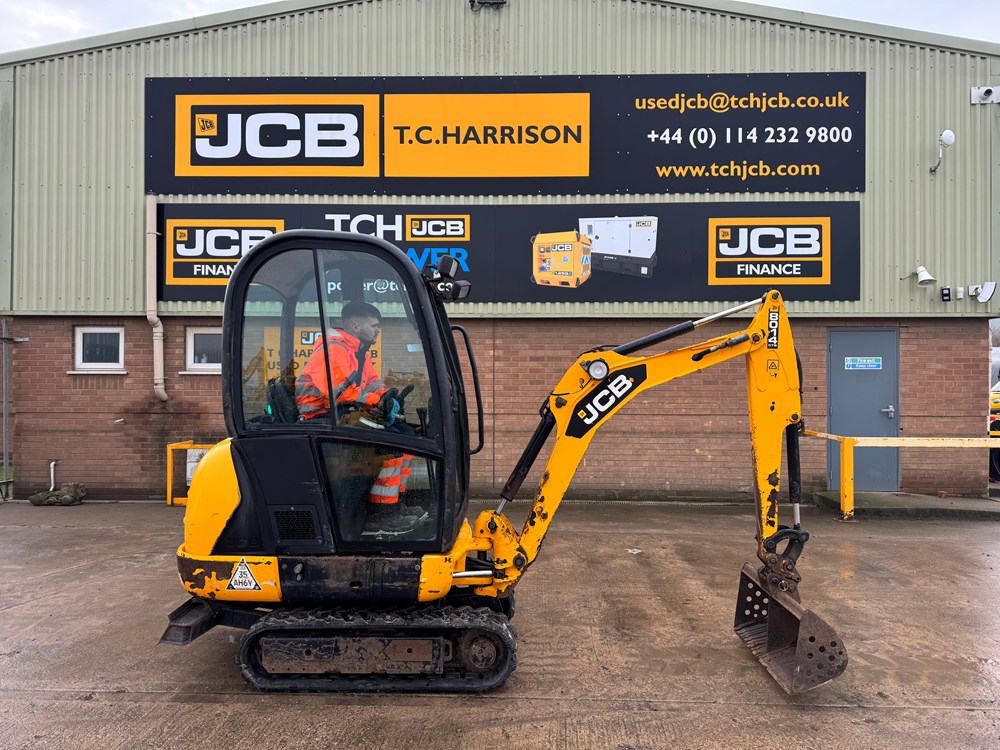 JCB 8014 MINI EXCAVATOR - CAB WITH HEATER, RUBBER TRACKS, ISO SERVO CONTROLS, VINYL STATIC SEAT, STANDARD DOZER BLADE, MECHANICAL QUICK HITCH, 1 X BUCKET - LOCATION: TCH JCB LINCOLN