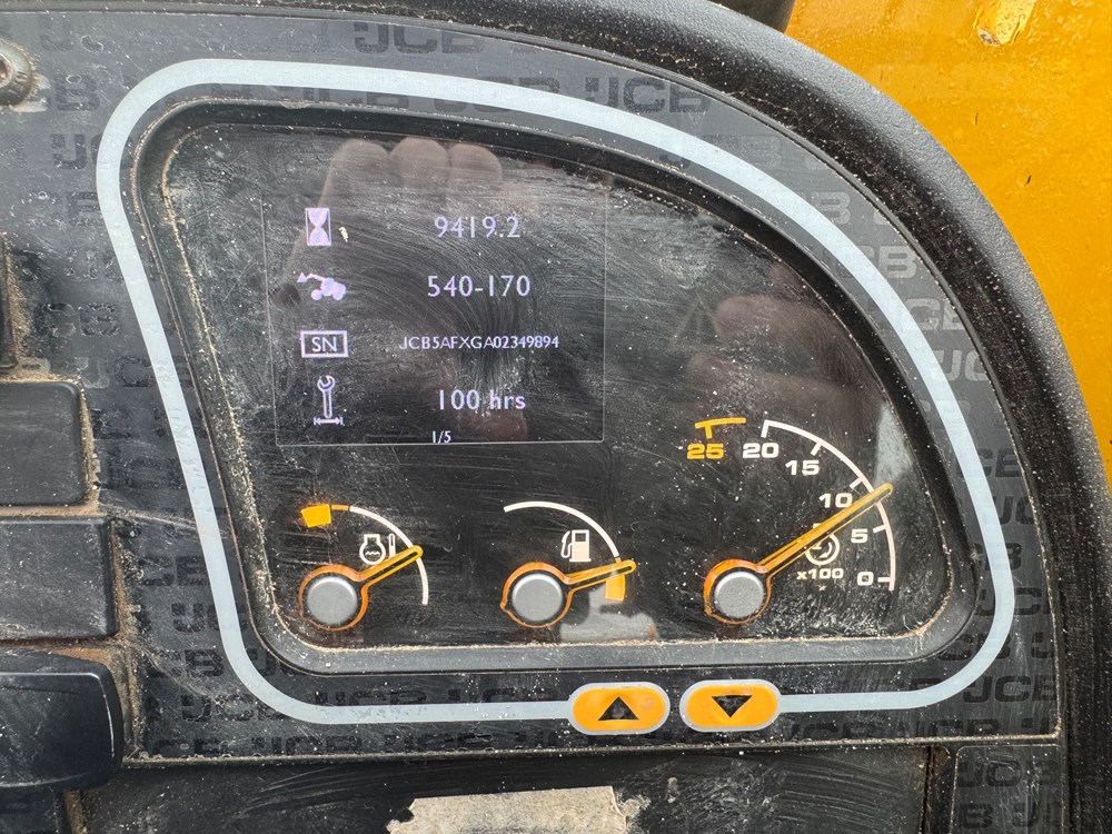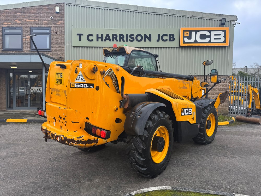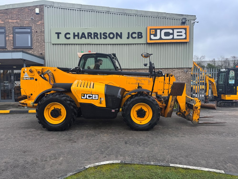 JCB 540-170 LOADALL - SWAY, STABILISERS, T4 ENGINE, SERVO, 2 LEVER, 1 AUX. PLACING PATTERN, CAB INCLUDING HEATER, FABRIC SUSPENSION SEAT WITH ADJUSTABLE BACKREST, FRONT SCREEN GUARD, CLEAR VIEW Q-FIT CARRIAGE WITH INTEGRAL SIDESHIFT, PALLET FORKS - LOCATION: TCH JCB ALFRETON