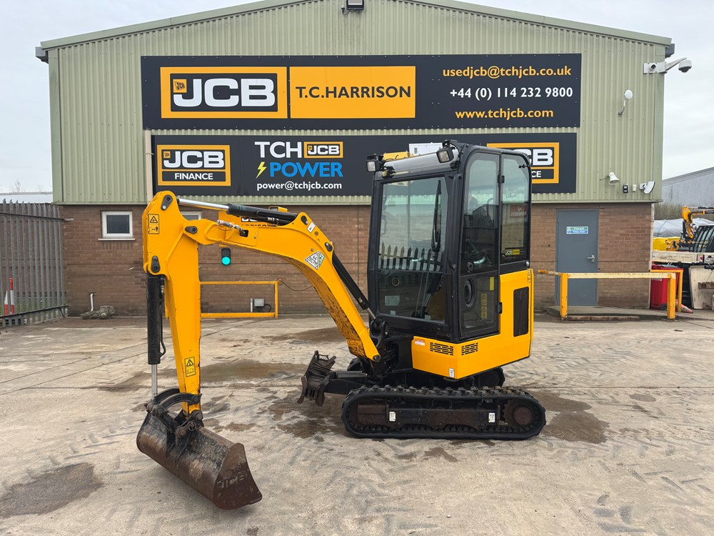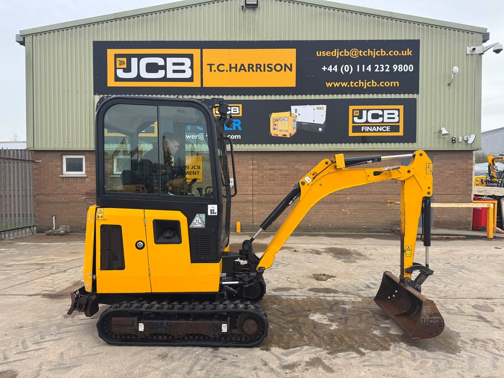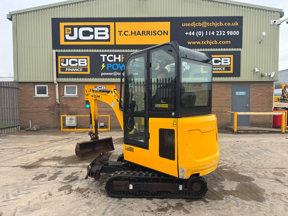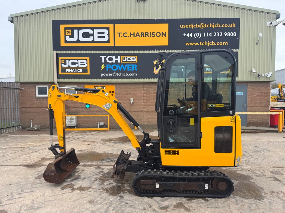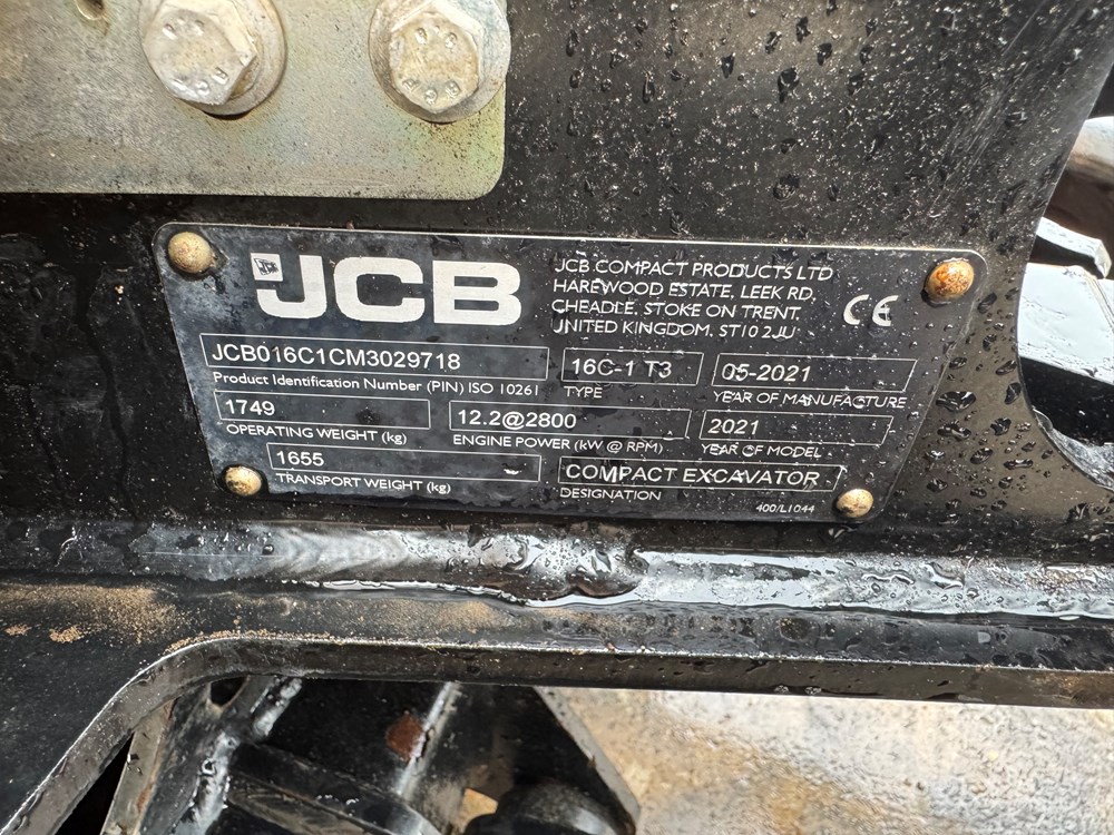 JCB 16C-1 MINI EXCAVATOR - CAB WITH HEATER, RUBBER TRACKS, ISO CONTROL PATTERN: HIGH FLOW; DOUBLE ACTING AUX, EXTENDING UNDERCARRIAGE, STATIC FABRIC SEAT, 1100MM DIPPER, STANDARD DOZER WITH SWING OUT EXTENSIONS, AUTO KICK DOWN TRACK MOTORS, 3 X USED BUCKETS - LOCATION: TCH JCB LINCOLN